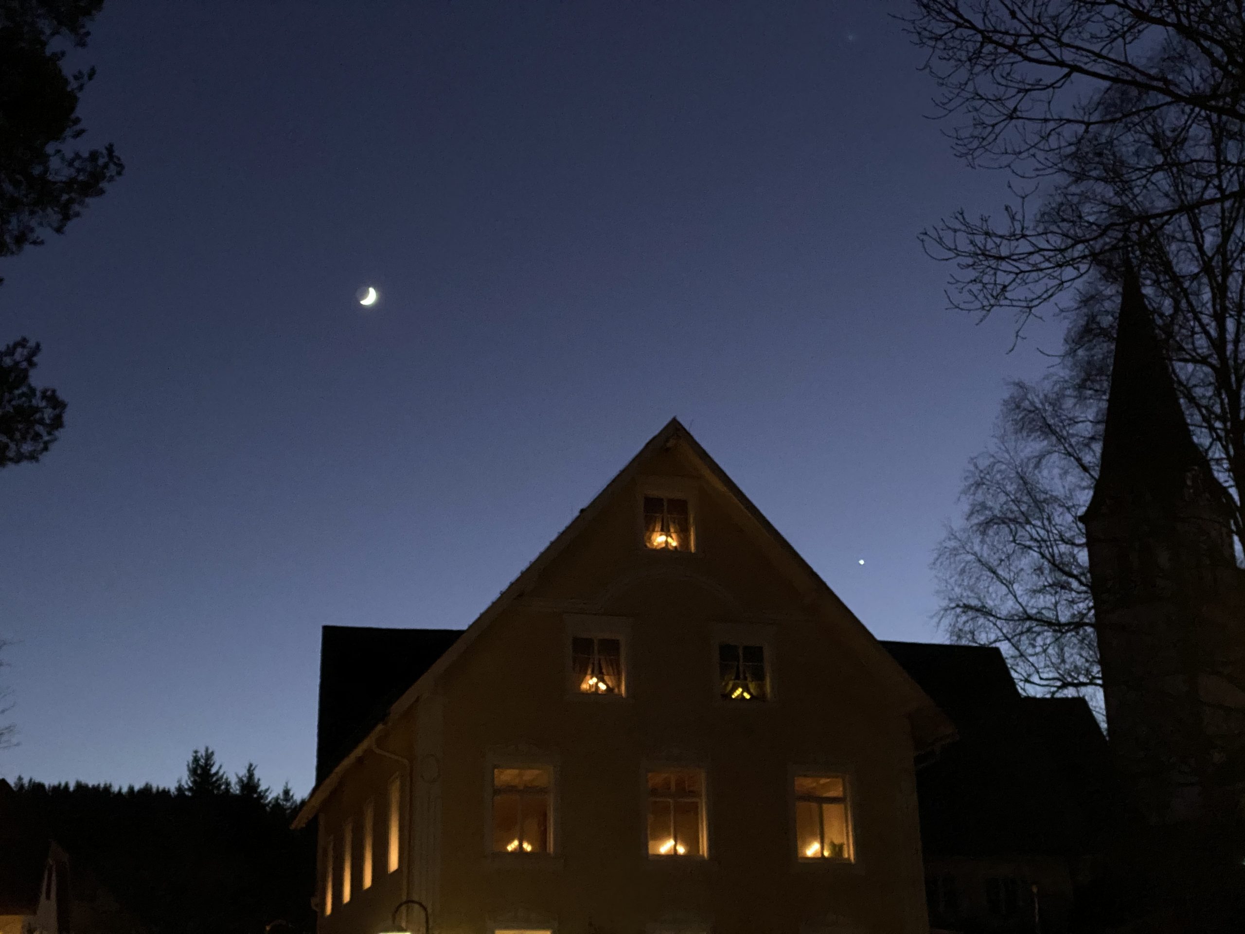 Dann eilte ich schnell nach draußen 🏃‍♀️ denn ich wollte nicht den großen Stern verpassen 💫 und da war es 😯 neben dem Mond 🌒 es leuchtete so klar und deutlich 🌟