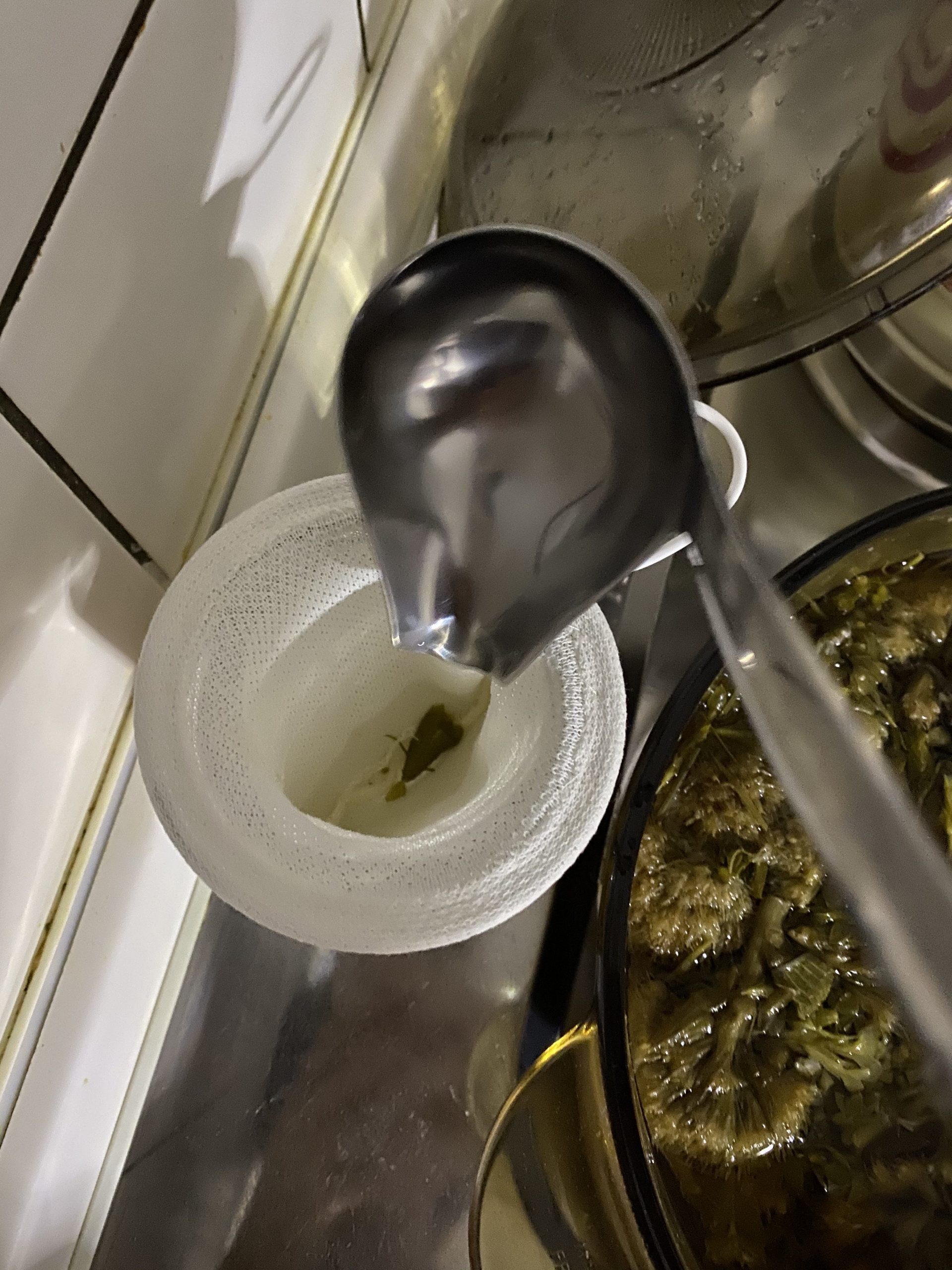 Jetzt habe ich die Kräuter 🌿 Flüssigkeit durch ein Bio Baumwolle Netz durchgesiebt 🙂 in eine Flasche umgefüllt und in Kühlschrank gestellt. Wenn man es haltbar machen will, dann muss man die Flüssigkeit nochmal mit Zucker aufkochen und zu einem Sirup verarbeiten. In saubere 🧽 heiß gespülte Flaschen abfüllen und an einen kühlen Ort stellen. Der Zucker macht es haltbar.